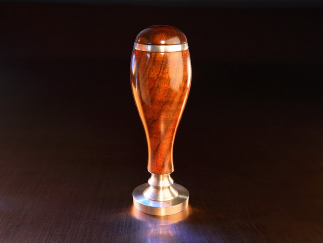 Pečetidlo je vyrobeno z broušeného titanu v kombinaci s leštěnou rukojetí z ušlechtilého dřeva.